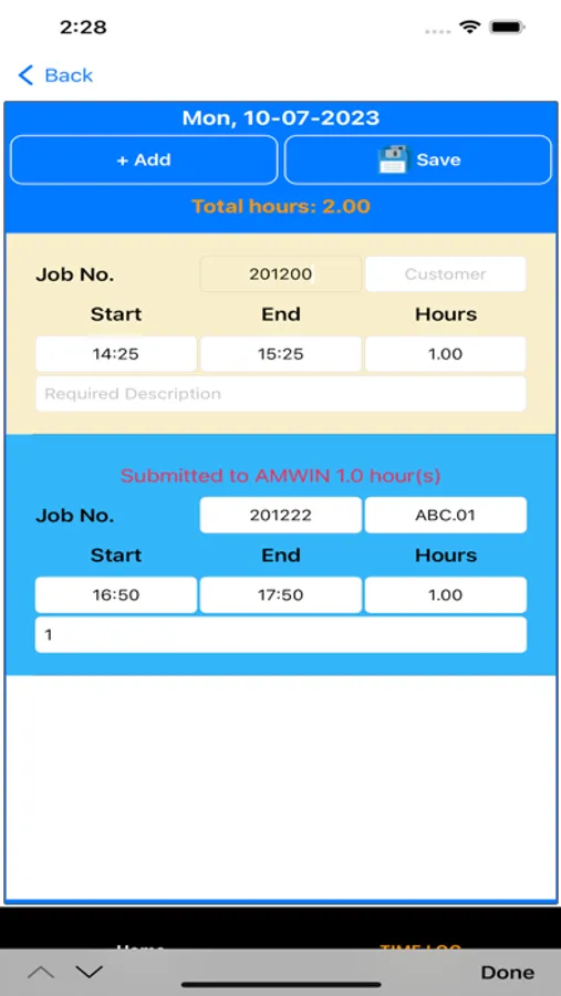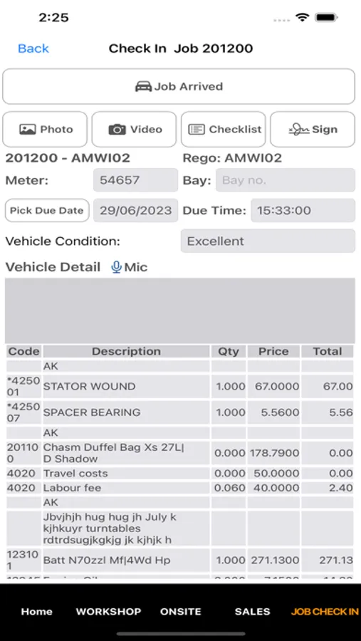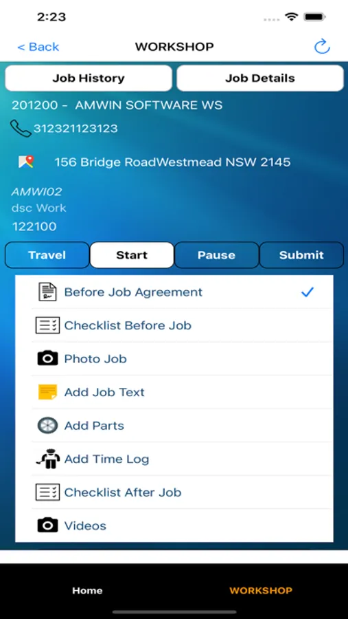 User can add parts, labour and text to a job as well as take photos of the job. All these information will be uploaded to AM-WIN Server