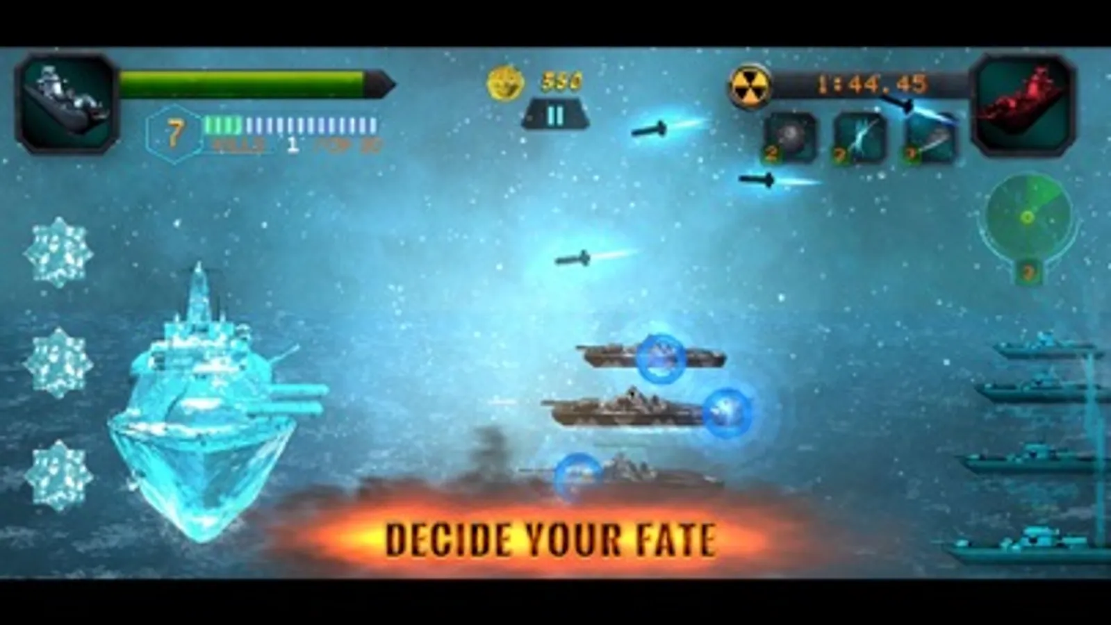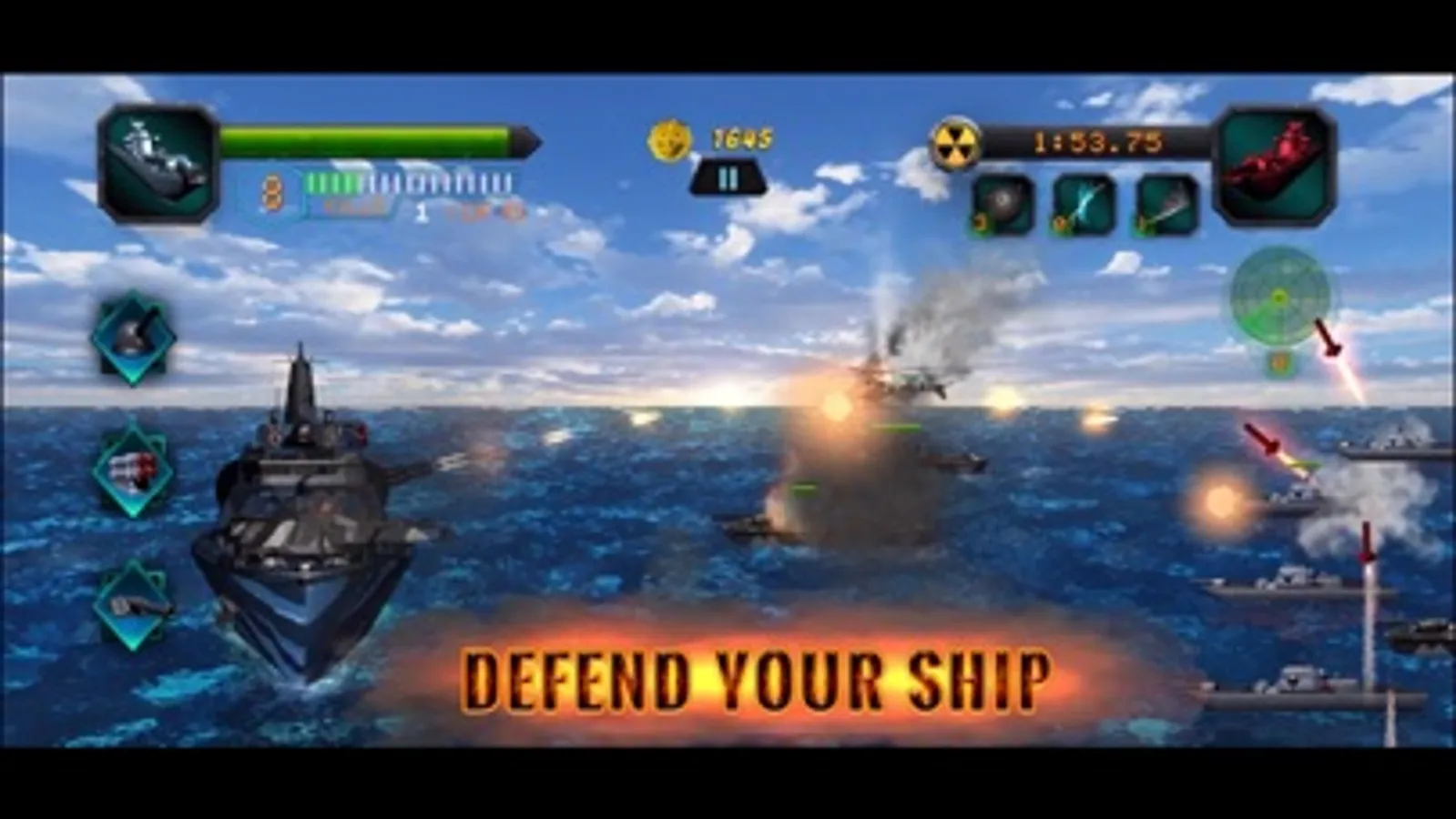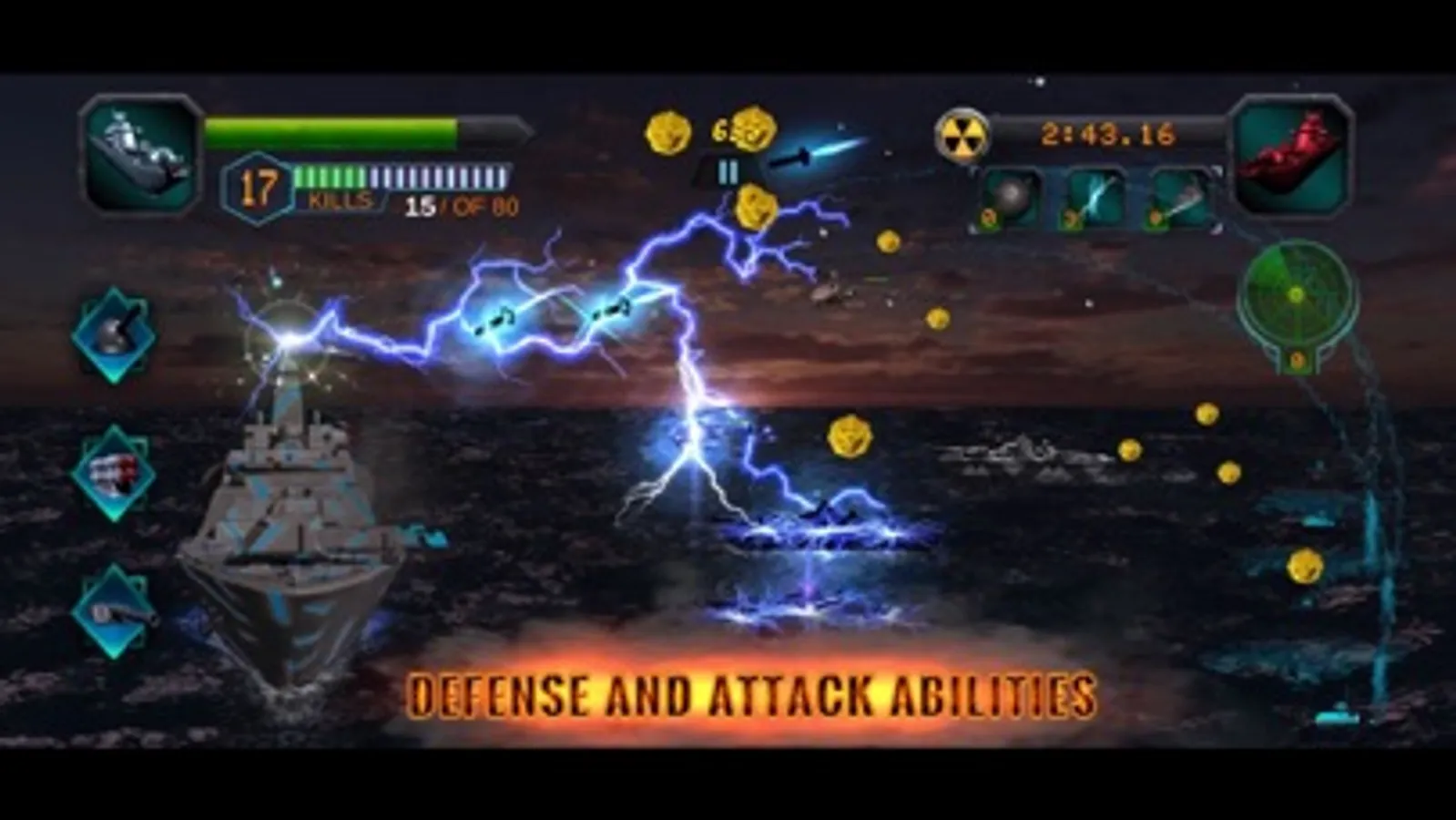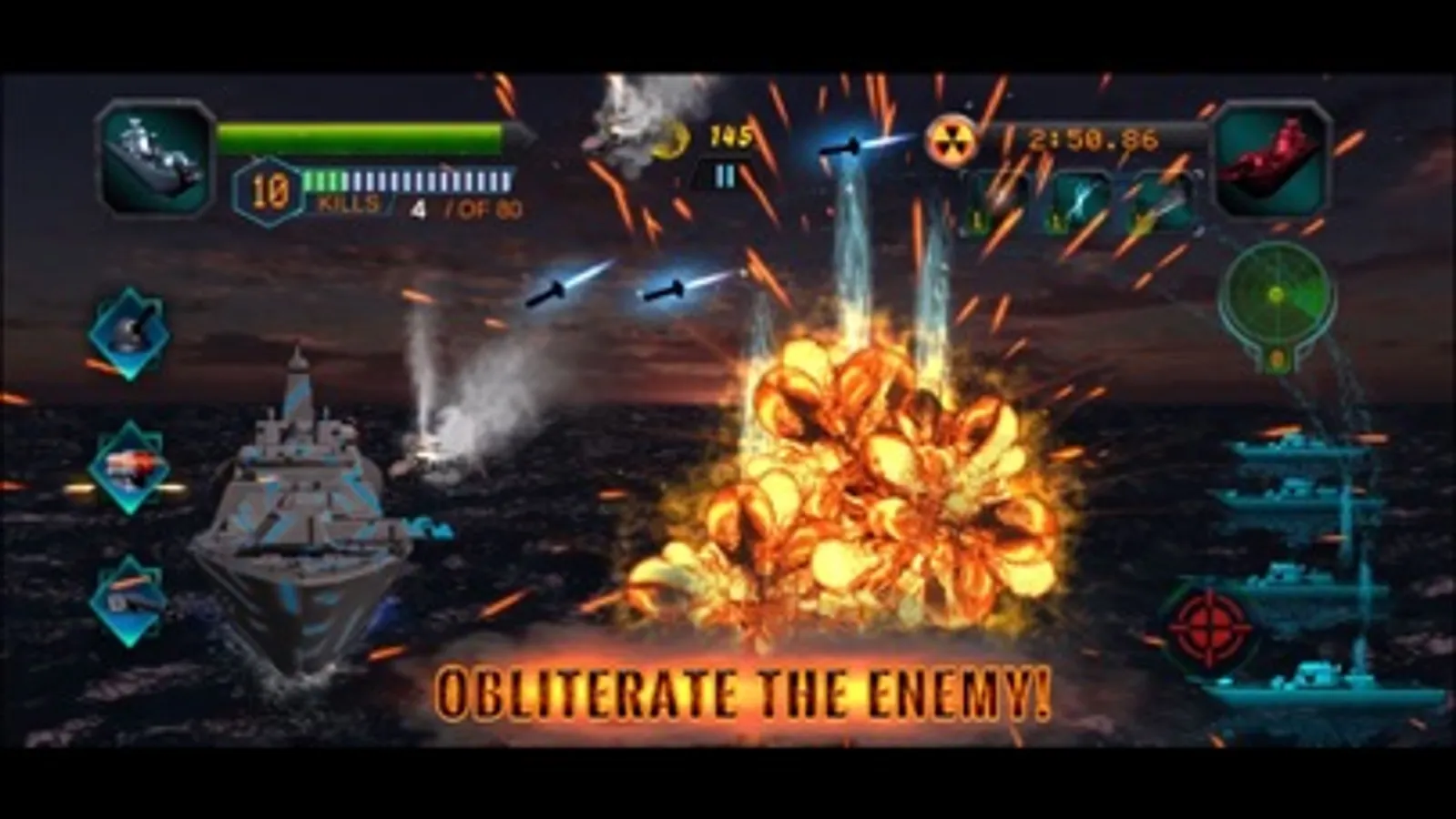 Multiple hostiles approaching port side! MAN YOUR BATTLE STATIONS! Get ready for some intense Naval Warfare where you choose your fate! Use strategy to defeat the enemy and stop the Nuclear Threat in time! Defeat the enemy by choosing when to use your ships' three main weapons, along with an arsenal of defense and attack abilities. Earn while you fight to upgrade to more powerful ships and load up on more defense and attack abilities. Choose from over 22 ships, where each ship has its strengths and weaknesses. WELCOME ABOARD CAPTAIN!