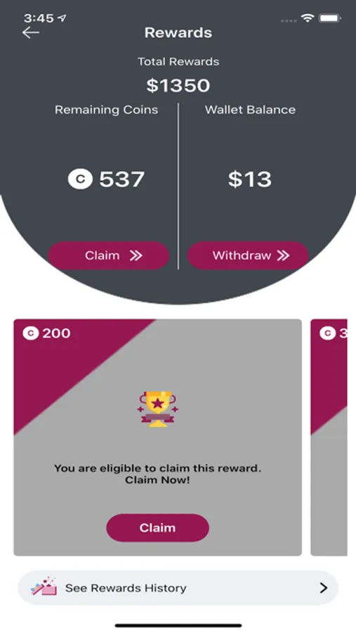 2. By using Coins, you can scratch available Cards in Rewards Menu.