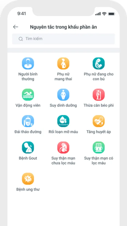 • Tính toán nhu cầu dinh dưỡng khuyến nghị phù hợp với từng độ tuổi, giới tính, chế độ ăn, mức độ hoạt động thể lực,…