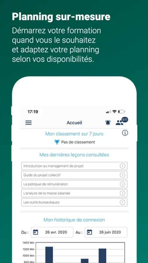 Vous accédez à votre formation en ligne quand et où vous le souhaitez depuis l’application mobile.
