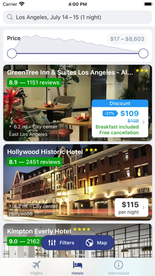 • Explore options with Price map: A convenient price map displays cheap plane tickets across several destinations. Pick a place, book flights with peace of mind, and save. Low-cost airlines can take you places you’ve always wanted to see!