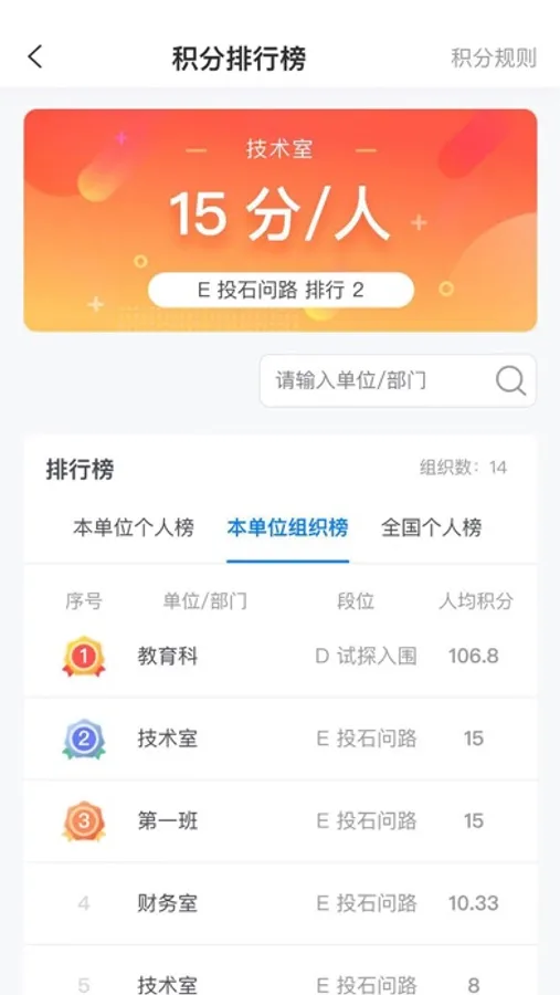 7、段位积分——颂业科学的积分评价体系会,实时记录个人积分、个人段位、组织人均积分、组织段位,还可以导出积分,为考核奖励每个组织和个人提供基础数据。