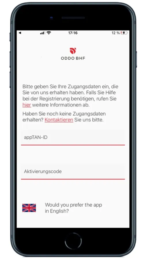 · Sprechen Sie Ihren Kundenberater an oder kontaktieren Sie uns über unsere Serviceline und lassen sich für die ODDO BHF appTAN registrieren