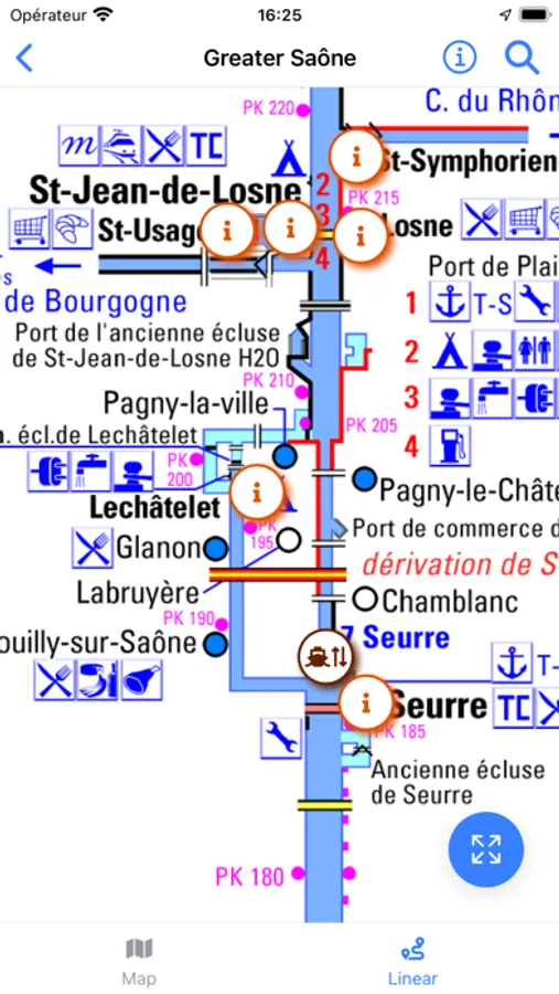 These displays will allow you to easily locate the locks, ports, stopovers, waiting pontoons, boat rental companies...