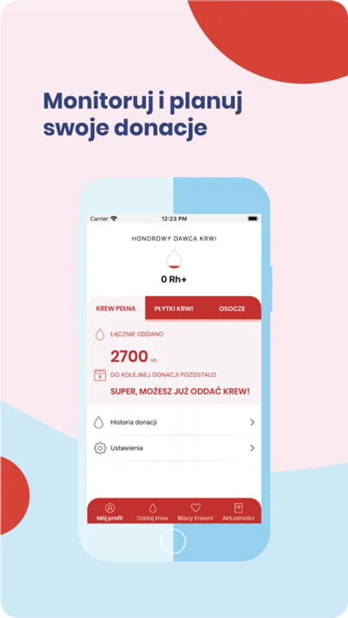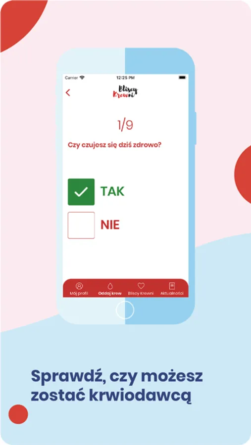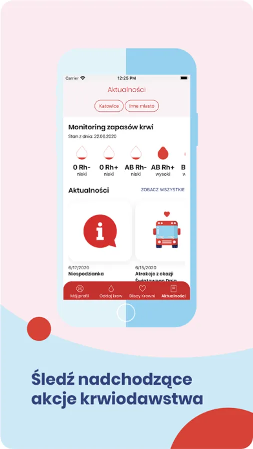 Aplikacja ma za zadanie usprawnić krwiodawcom proces planowania donacji oraz zapewnić możliwość korzystania ze zniżek oferowanych przez lokale gastronomiczne.