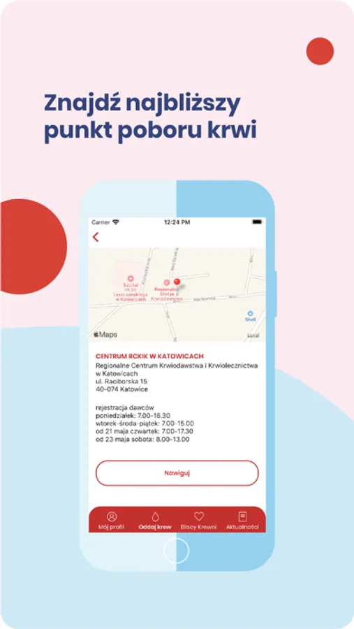 - Zaplanujesz oddanie krwi – aplikacja przypomni o zbliżającym się terminie kolejnej donacji, a także podpowie, gdzie znajdują się najbliższe punkty krwiodawstwa. Wskaże również wygodne opcje dojazdu