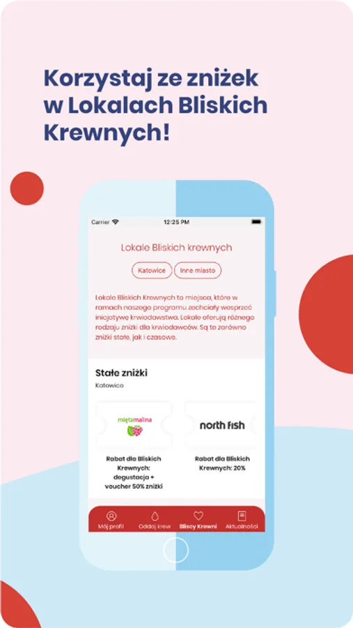 - Odwiedzisz Lokale Bliskich Krewnych – skorzystasz z kuponów oferowanych przez Lokale Bliskich Krewnych – przyjaciół RCKiK w Katowicach, którzy wspierają inicjatywę krwiodawstwa!