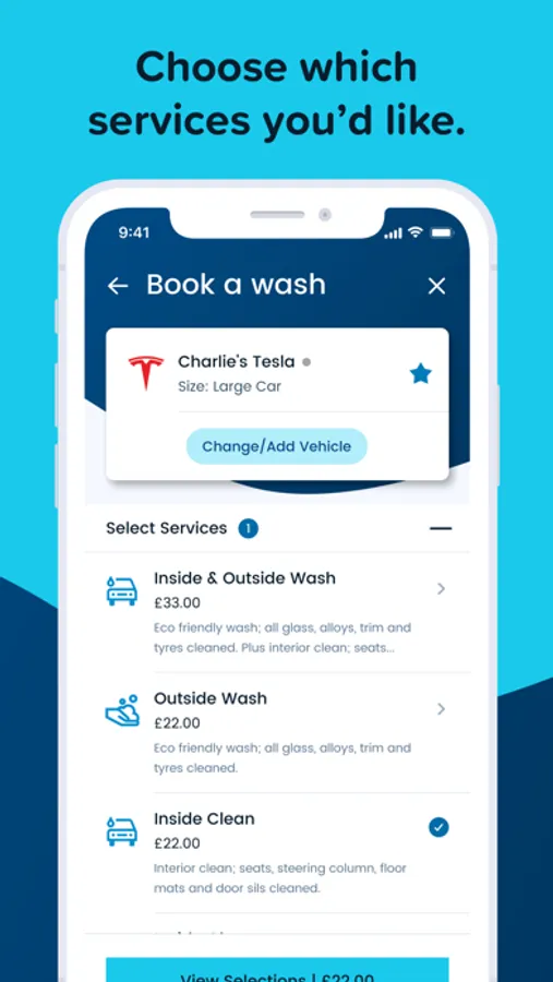 Our app enables you to add multiple vehicles to your garage, set-up regular scheduled washes for each vehicle, manage your past and upcoming washes and book any of our additional vehicle services.