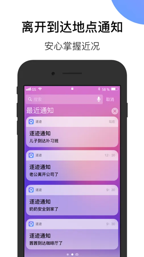 逐迹帮助您在万千道路中寻踪觅迹,了解家人的运动轨迹、实时位置,时刻守护Ta们
