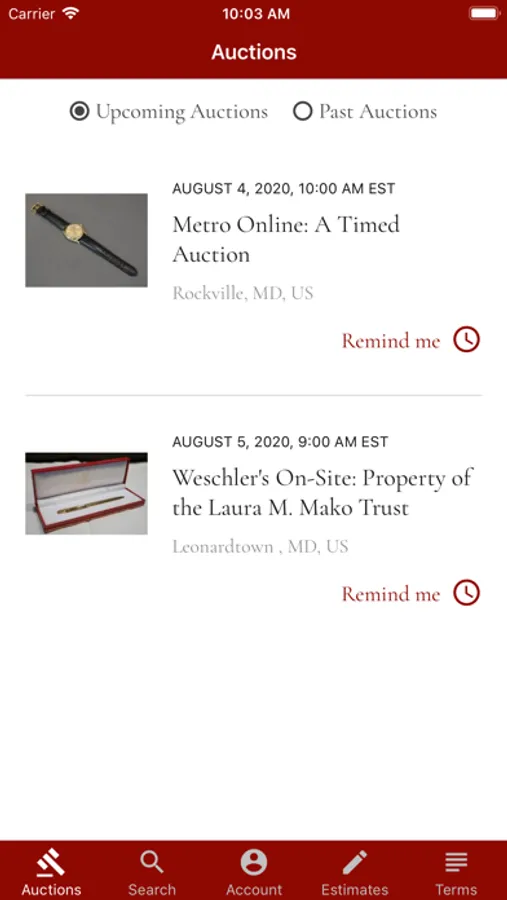 - Receive reminders to ensure you never miss a chance to bid in a sale