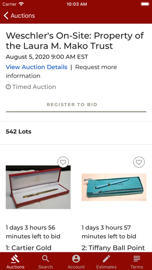 The new Weschler's Live Bidding app lets you view our auction calendar and bid live in our auctions from your mobile device.