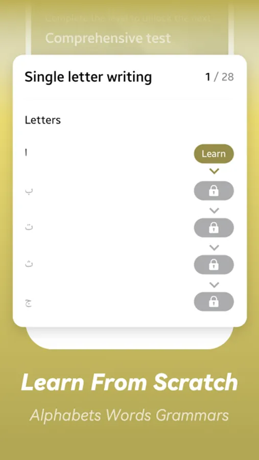 The task-driven Arabic vocabulary test system will expand your listening, reading, writing and speaking skills through the entire learning process for every single word.