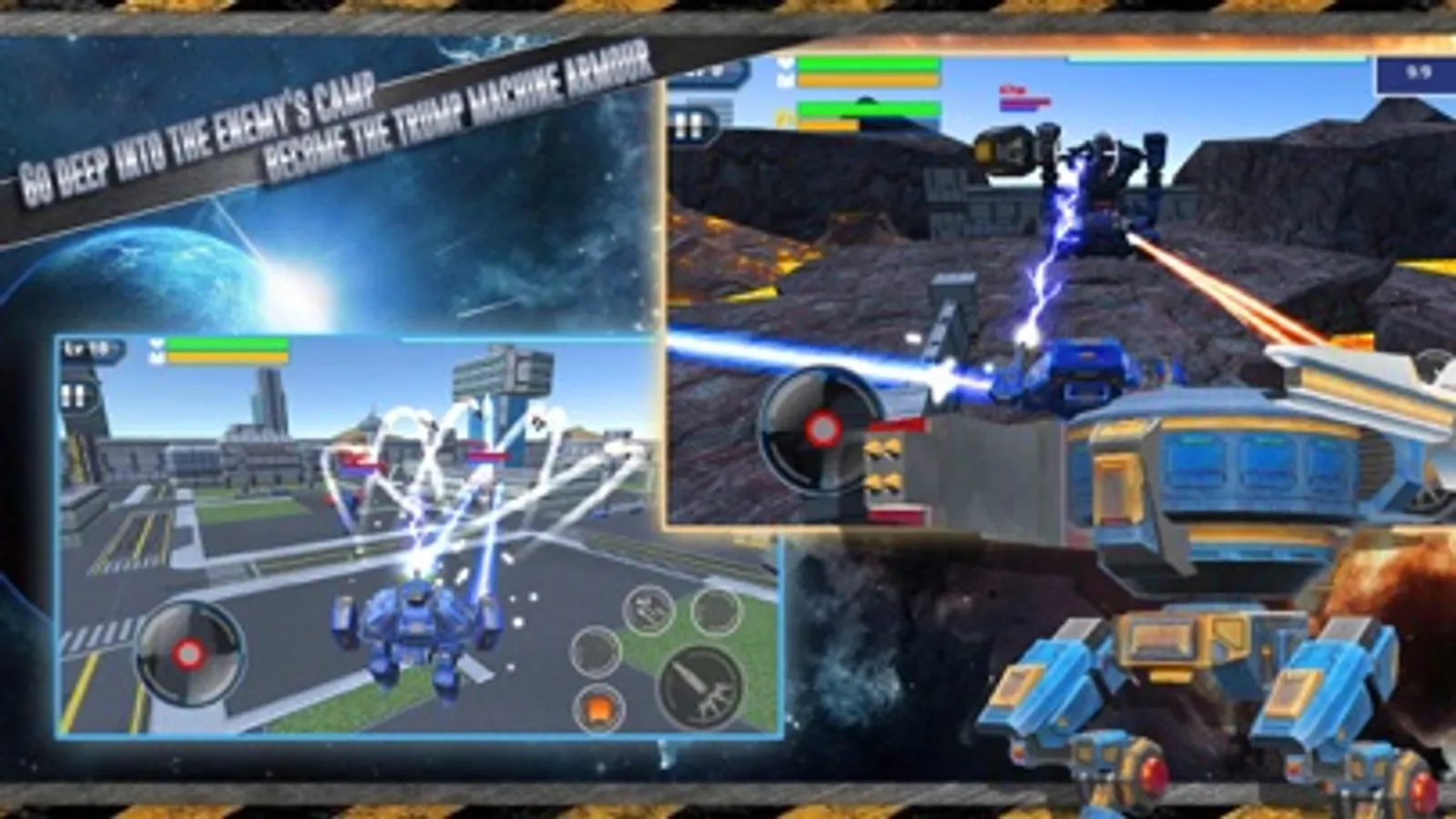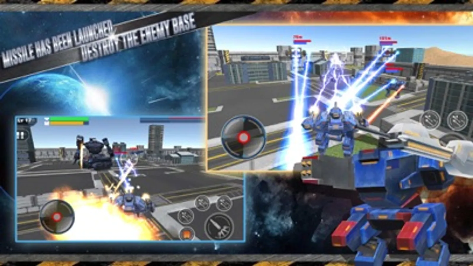 The game-play of this robot game is pretty simple, you will fight against other battle robots and tanks to save your city from fighter robots, tanks, canons, and their robotic vehicles and finish them to get access to next level. A savior robot of the 3D shooting games world who has the power to use extreme shooting. You can fire missiles and ultimate machine fire shots in this futuristic robot battle game. This action-packed robot war game is insane and awesome and perfect synonym of a robot, robot games, super machines, combat games, and best fighting games.