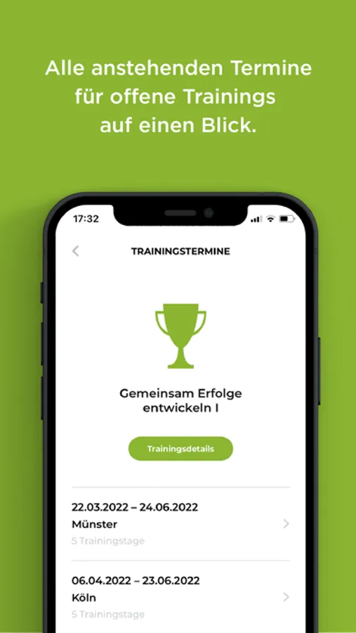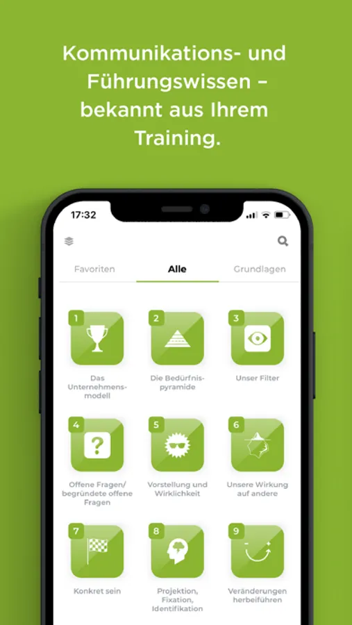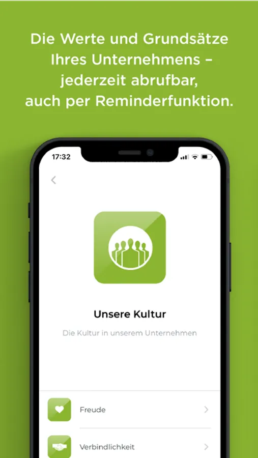 Führung intern unterstützt Sie im Rahmen ihrer individuellen Wertfreunde-Trainings und/oder -Coachings beim Erlernen und Wiederholen aller trainingsrelevanten Inhalte. Die Werte und Grundsätze Ihres Unternehmens sind in der App hinterlegt und können jederzeit aufgerufen und somit noch leichter verinnerlicht werden – die Reminderfunktion ist dabei eine hilfreiche Unterstützung. In der App finden Sie außerdem alle anstehenden Termine der offenen Trainings von Wertfreunde.