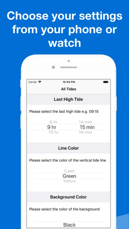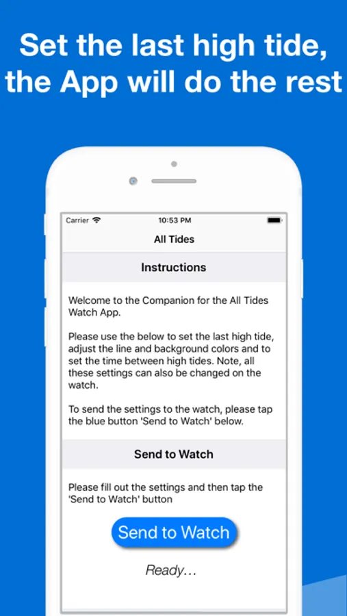 All you need is the last high tide time and the App will calculate the rest.