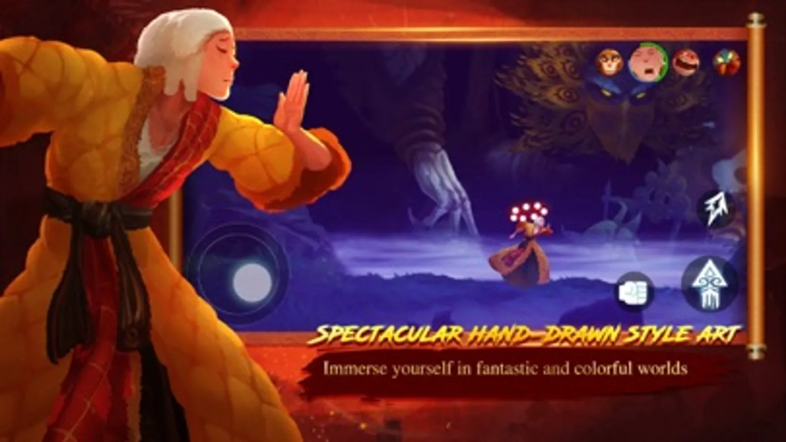 The game follows the journey of a master and his three disciples as they fight, solve puzzles, collect loot, parkour, platform and more on their mystical demon-slaying adventure. You must capitalize on their special attacks and holy relics in a battle of wit and bravery against demons to complete their pilgrimage in reuniting the scripture.