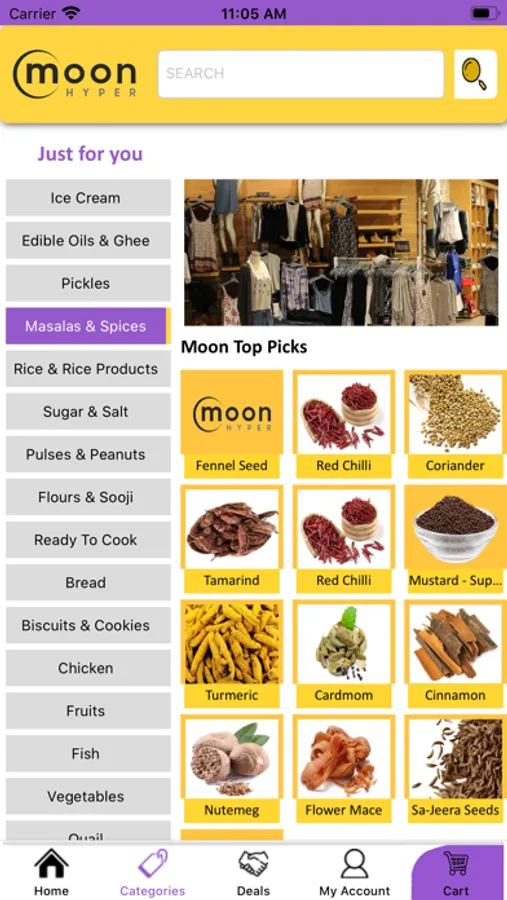 In moon hyper application we have multiples stores and categories . just like online mall.