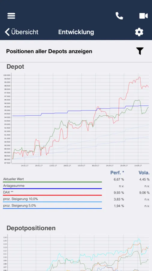 - Anzeige der Wertentwicklung Ihrer Depots