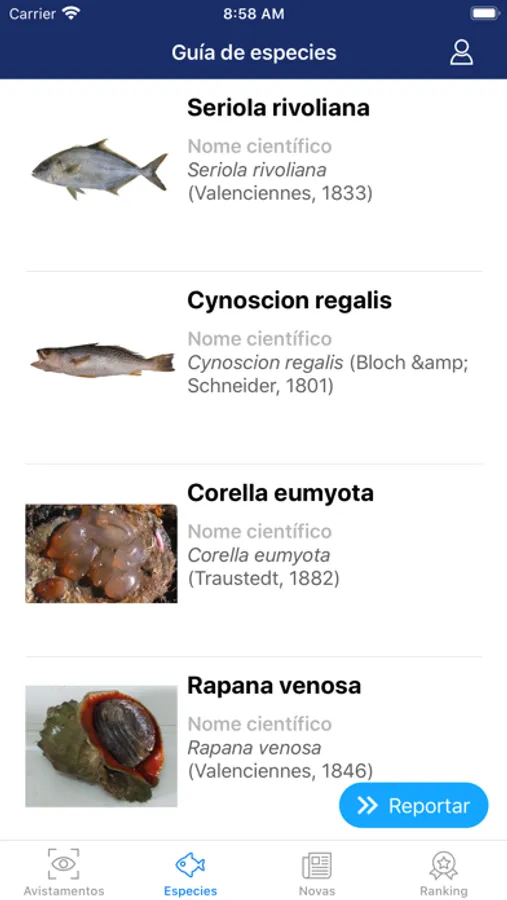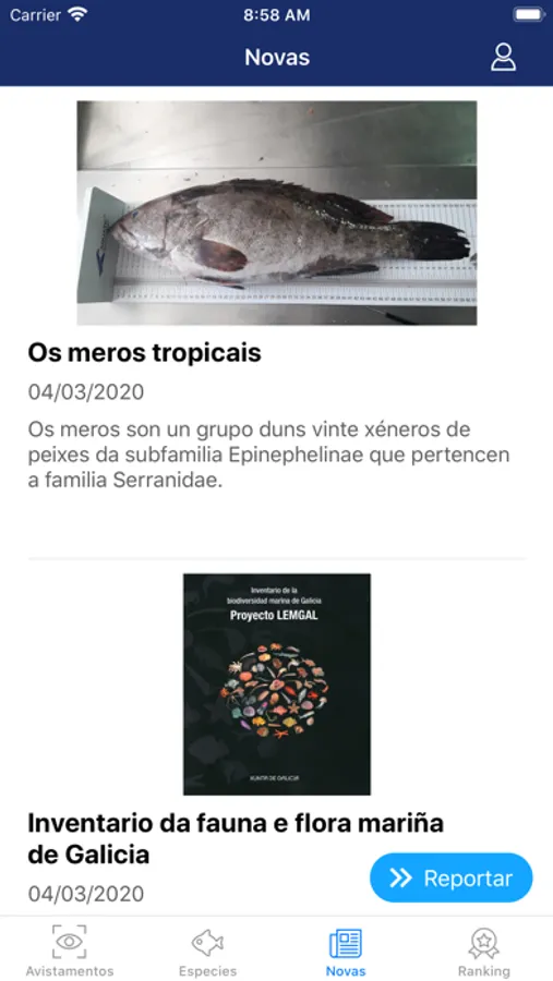 Ademais, dispón dos apartados de "Guía de especies" onde poderá consultar algunhas fichas de especies coa súa descrición e os avistamentos xeolocalizados desas especies, novas de interese relacionadas co proxecto, ránking onde se amosará unha listaxe das persoas e o número de avistamentos, información útil con recomendacións sobre como realizar as fotografías ou conservar un exemplar, e de selo caso, o modo de achegalo ao persoal experto. Así mesmo, pode recibir notificacións cando se produce un novo avistamento, se engade unha nova e tamén enviar consultas.