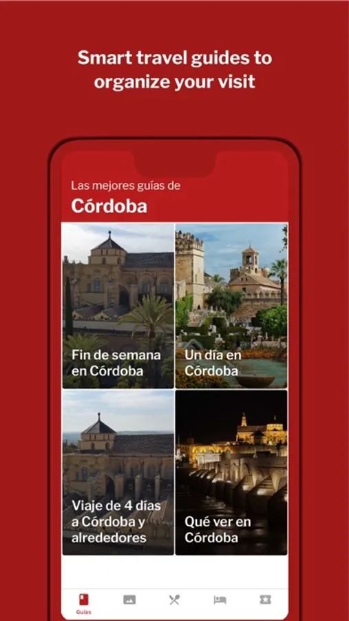 In Córdoba by GOAZ you will find four travel guides of the city, as it will help you organize your trip in a way that adapts your desires. You will find a “What to see” guide with the essential places that you must visit in that city, without time or routes, so you can organize yourself as you want. But if you are looking for a more planned itinerary, you can also consult the guides for "One day", "Weekend" or "4-day trip". With these guides you will not have to worry about organizing your trip, as you have already done it from morning to night.