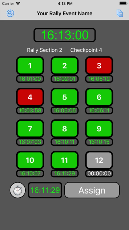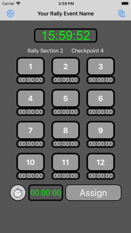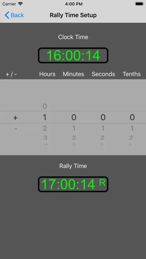 You can use the standard iPhone time, or adjust it for Rally Time.