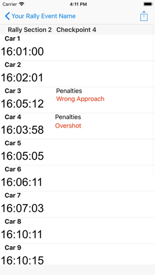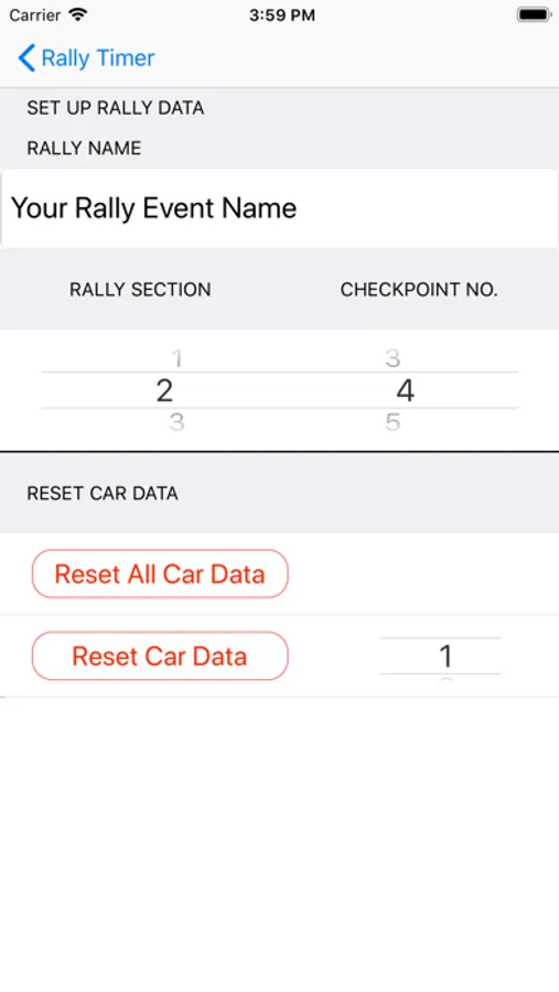 Rally Event Name, Rally Section, Control Number and Control Name are all adjustable.