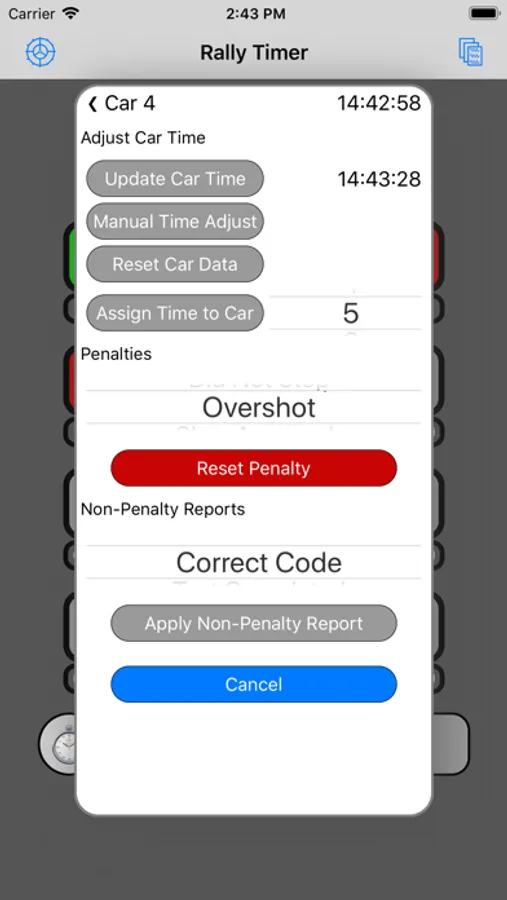 Record arrival time of individual cars using either the Car button or the Stopwatch button.
