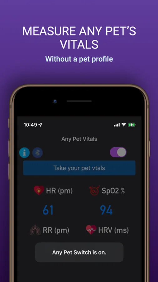 The SensePet is a pet health monitoring system consisting of both easy-to-use hardware as well as state-of-the-art, AI-based companion software and an app that allows the pet owner to track their pet’s health over time. The SensePet consists of a SensePet Clip and this App that connects via Bluetooth to the SensePet Clip for measuring your pet’s heart rate, blood oxygen, respiration rate, and heart rate variability (HRV).