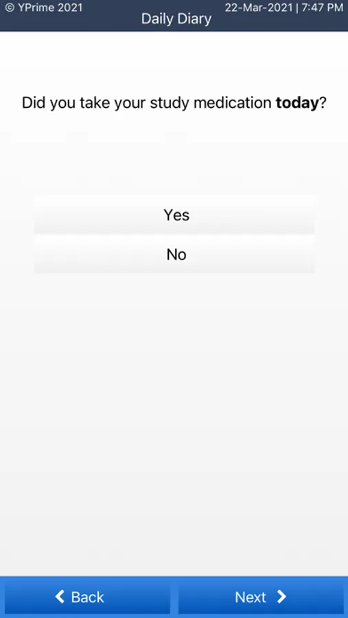 Access study participant questionnaires easily and with minimal day to day disruption by downloading this app on your personal device. Using the enrollment ID provided by your medical professional, create your unique login code and complete your training to begin. The available questionnaires will be specific to your clinical study and the YPrime eCOA application will remind you when the questionnaires need to be completed based off your visit schedule. Use this app to meet clinical study questionnaire completion and compliance requirements.