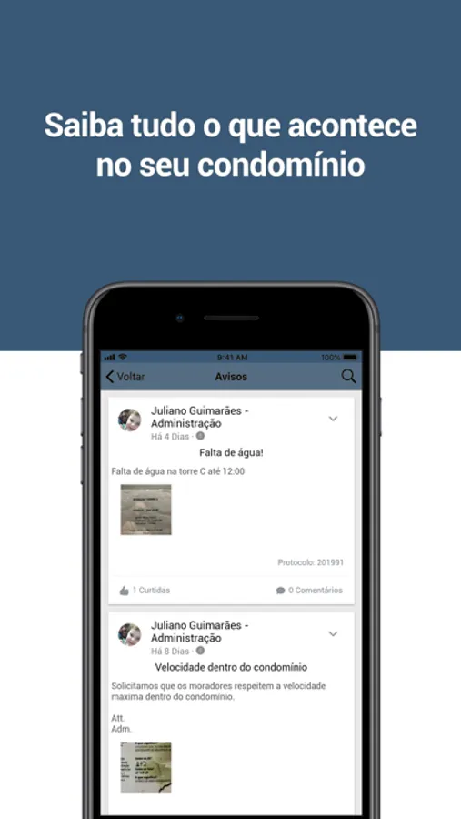 Receba notificações em seu celular de tudo que acontece no seu condomínio.