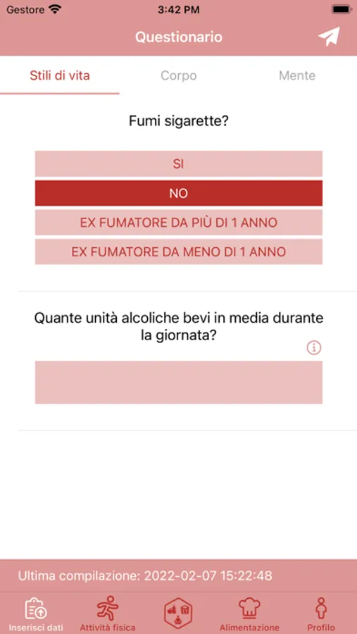 • Inserire i dati per ottenere il Wellness Passport (età, altezza, peso, circonferenza addominale e alcune semplici risposte sullo stile di vita e lo stress quotidiano)