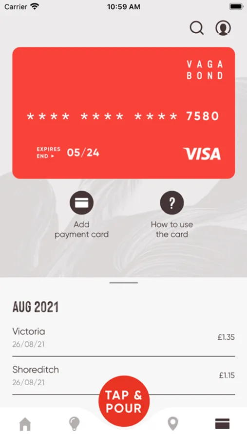 - Set up a debit card enable you to pour wine by the glass in Vagabond stores with your phone