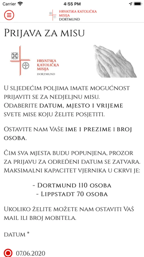 Aplikacija HKM Dortmund služi vjernicima iz Dortmunda i Lipsstadta i iz okolnih mjesta da budu informirani o najnovijim događajima koji su vezani uz našu župu. Imate mogućnost saznati kad se održavaju svete i mise i ostali sakramenti. Također postoji mogućnost prijavti se za mise.