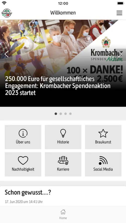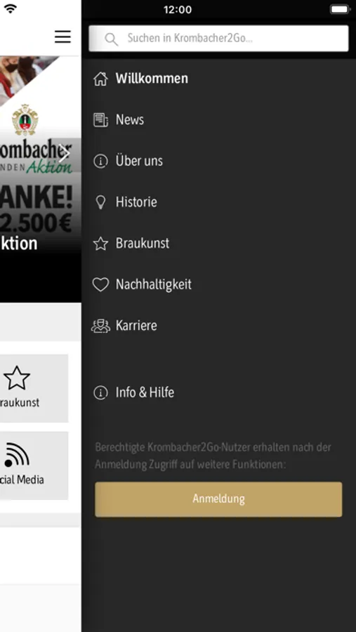 Krombacher2Go ist die zentrale Informationsplattform der Krombacher Gruppe für Partner, Kunden, Interessierte und Mitarbeiter. Die App bietet aktuelle Informationen über die Unternehmen der Krombacher Gruppe, gibt Einblicke in die Unternehmensgeschichte, die Braukunst sowie das Nachhaltigkeitsengagement der Krombacher Brauerei. Ergänzt wird das Informationsangebot durch einen umfassenden Überblick an Karrieremöglichkeiten und weitere Services.