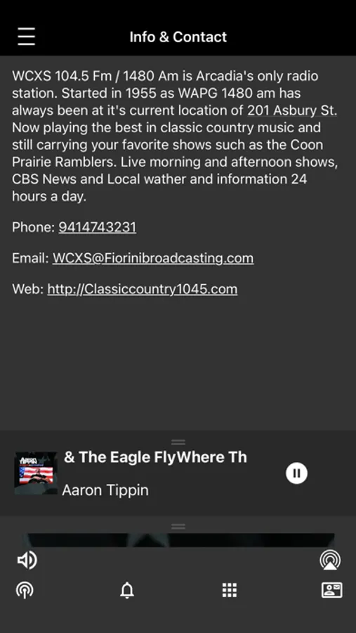 WCXS 104.5 Fm is the NEW Classic Country 1045. Located in Arcadia Florida and covering Arcadia, Punta Gorda and Port Charlotte. Classic Country is owned and operated by Fiorini Broadcasting LLC, Punta Gorda, Fl with an operating frequency of 104.5 FM and 1480 AM. We carry local news sport and events along with the best in country music 24 hours a day. Live and local morning and afternoon shows, Local information for the community. Weather twice an hour with breaking weather events anytime they happen.