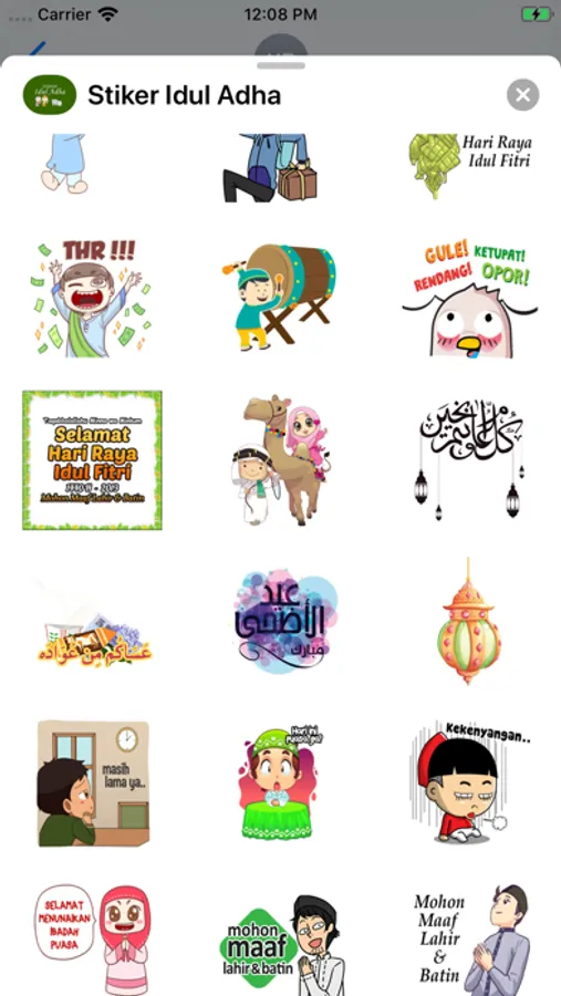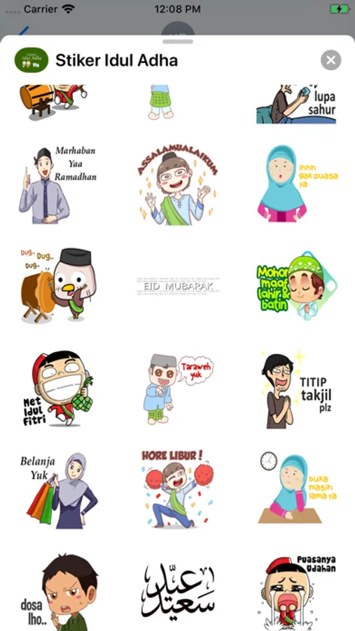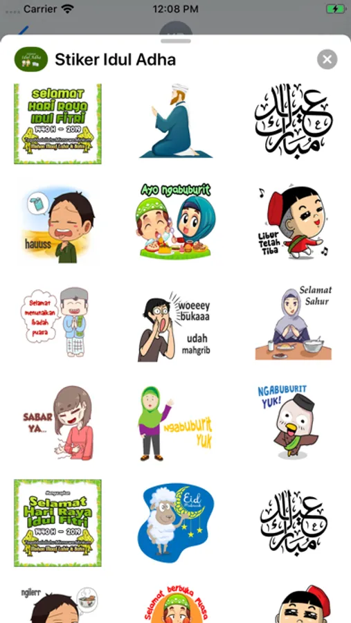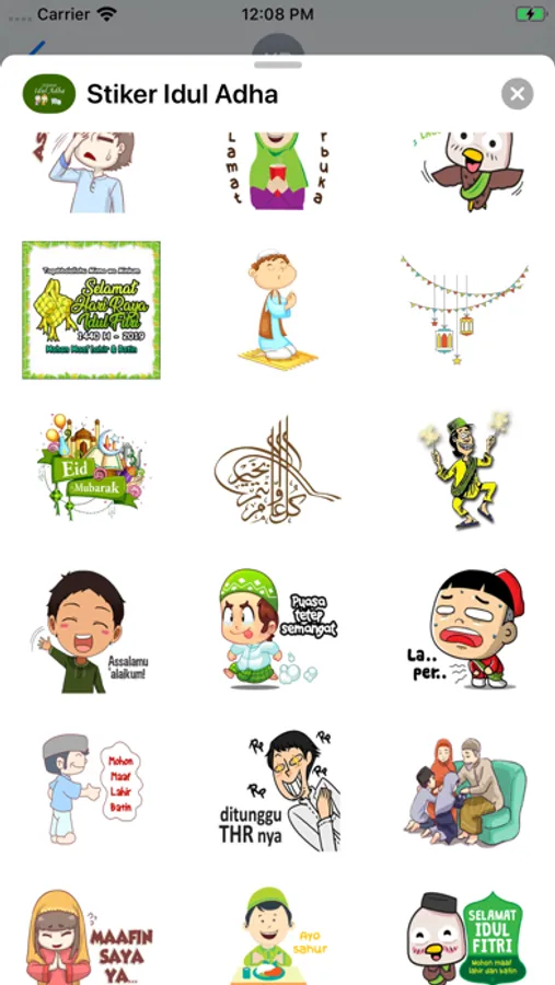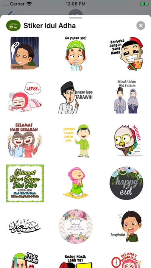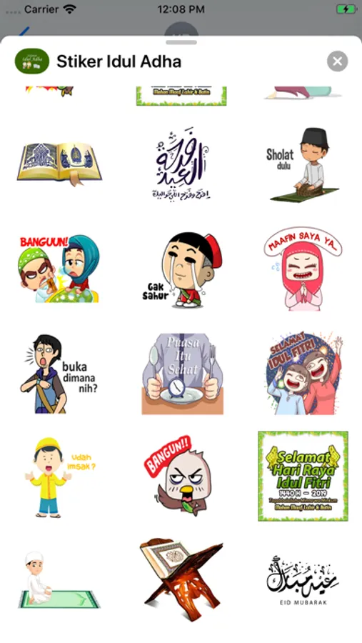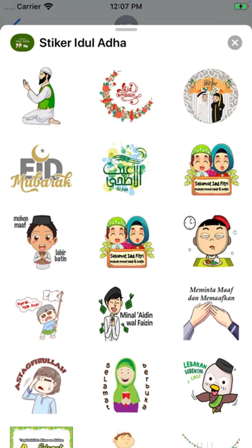 Aplikasi ini termasuk stiker untuk mengucapkan selamat kepada keluarga dan teman-teman pada hari libur Islam seperti Idul Fitri, Idul Adha dan ulang tahun Nabi