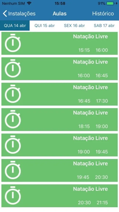 Agendar Massagens Terapêuticas; Natação Livre; Cardiofitness e Musculação