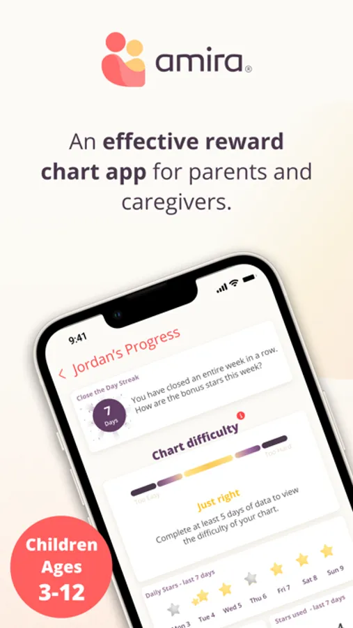 The Amira Parenting app is an effective reward chart app for parents and caregivers to help use research-based methods to effectively and positively respond to challenging behavior in children ages 3-12.