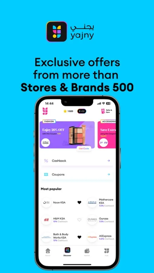 Yajny is a coupons and cashback earning app with 500+ stores from Egypt, Saudi Arabia, United Arab Emirates, Kuwait, and more.