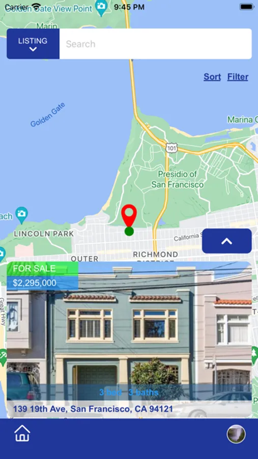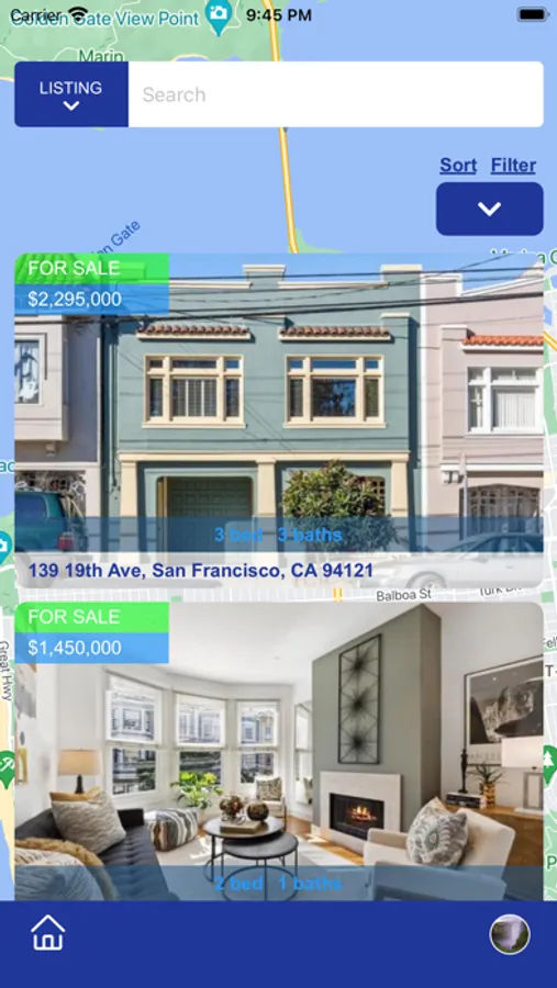 When you enter the Real Estate section, you can find a property by entering an address, city, state and Zip. You can also look for nearby property to buy, sell, or rent on the map or find properties on the market on the LIST view.