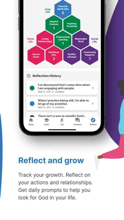 Track your growth. Pray and reflect on your actions and relationships. Get daily prompts to help you look for God in your life.