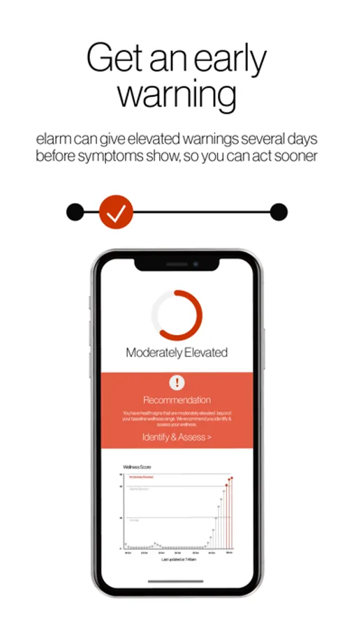 - elarm calculates your personalized wellness risk score every 4 hours based on variations from your baseline, using the latest data from your wearable device