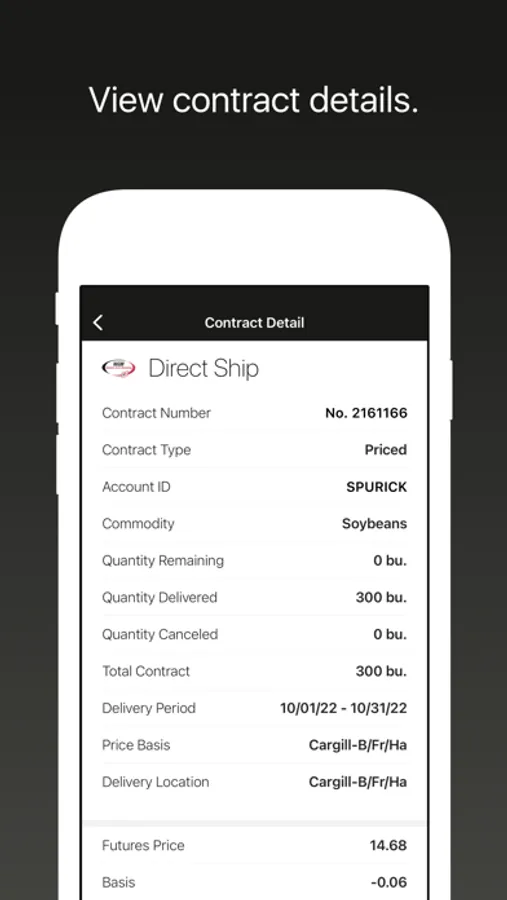 Contracts: See contract balances, including locked-in basis/futures prices