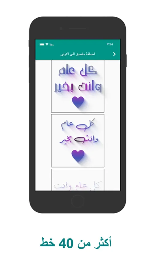 3- يحتوي البرنامج على اكثر من 40 خط عربي يظهر بها الملصق.