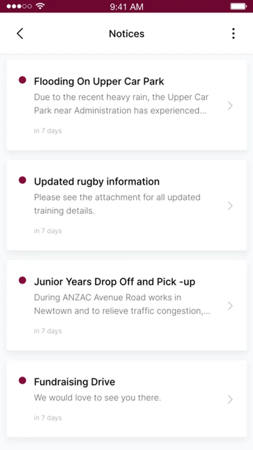 Notices: the Notices module provides The Scots School Albury with the ability to keep their community informed with important information, with push notifications for urgent school notices