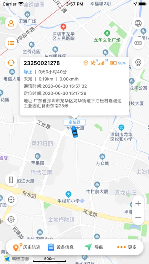 1、定位:通过平台或手机对终端设备进行时实时定位,了解设备运行状态。