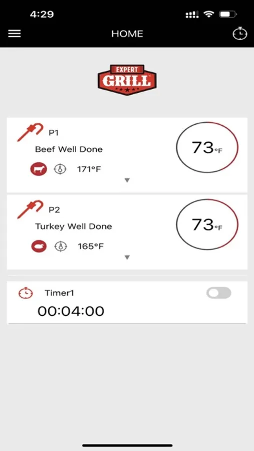 Expert Grill is a companion app for using applicable grill devices. You can use our app to search and connect grill devices with your phone via Bluetooth. You can control the target temp setting and adjust the temp alarm. Furthermore, you can use the app to control the function mode of your grill, and change the temp units on the devices' display.