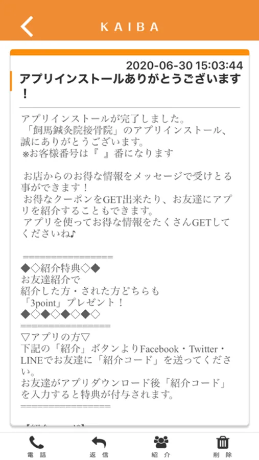 KAIBAのアプリをSNSを通じてお友達に紹介する事ができます。