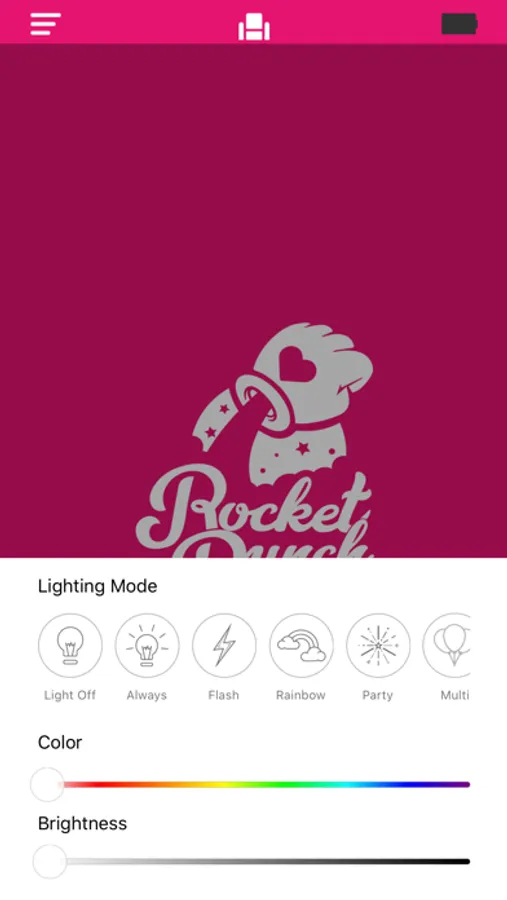 블루투스 연결을 통해 로켓펀치 공식 응원봉과 자신의 스마트 기기를 연동할 수 있으며, 조명의 색상, 모드를 제어하여 주변 분위기를 연출할 수 있습니다.